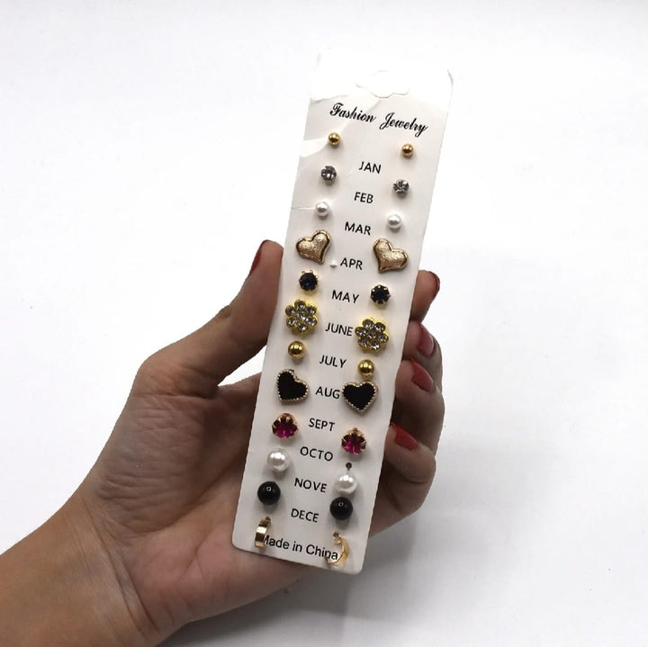 - 12 pairs of stud earrings – A variety of trendy styles in one set