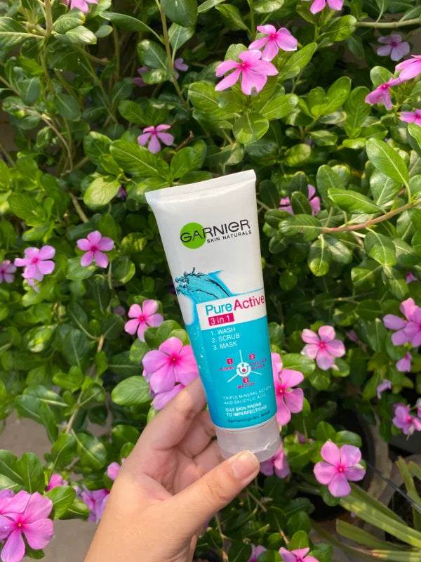 3 in 1 Garnier Skin Natural Pure Active Wash + Scrub + Mask