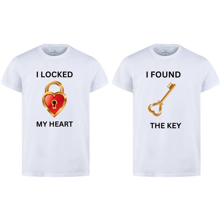 Combo Of My Heart & The Key Style White T-Shirt with Cute Design - Heart & key Design T-Shirts – Best Quality T-Shirts For Girls | T-Shirt For Women - T-Shirt For Men