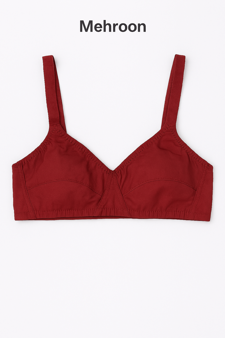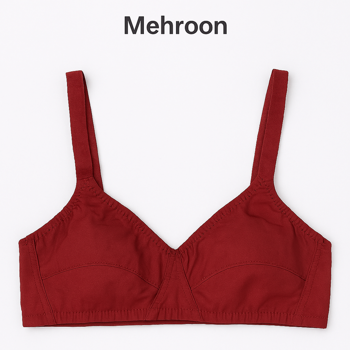 Upgrade your everyday comfort with this Cotton Sada Bra Pack of 3, featuring essential colors – Mehroon, Black, and Skin. Designed for all-day wear, these non-padded, non-wired bras offer superior comfort and breathability, making them perfect for daily use.