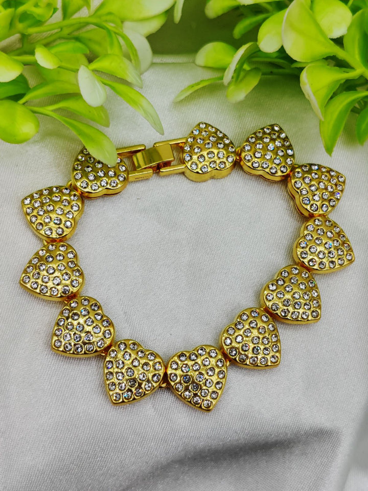 Elevate your elegance with this breathtaking heart-studded adjustable bracelet. Each shimmering heart is adorned with dazzling stones, creating a radiant glow that exudes sophistication and charm. Imported with care, this bracelet combines premium quality with stunning craftsmanship, making it the perfect accessory for any outfit.