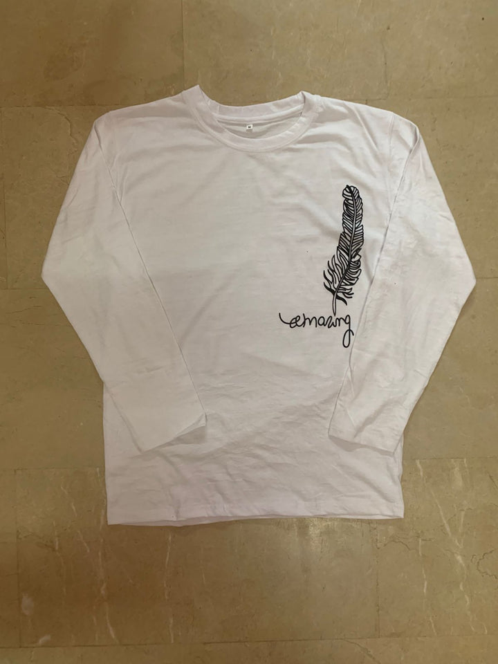 Product Details: Men's Leaf Print Full Sleeves T-Shirt - Stylish & Latest Designer Summer Collection - White