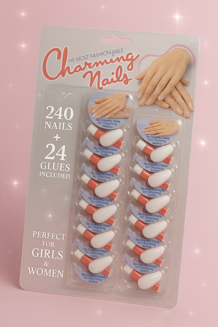 Elevate your nail game with this Pack of 24 Charming Artificial Nails – perfect for girls and women who love stylish, salon-quality nails at home. Each set includes 240 high-quality artificial nails and 24 glue tubes, making it ideal for multiple uses. These nails are easy to apply, durable, and designed to give a flawless finish for any occasion – from casual outings to weddings or parties.