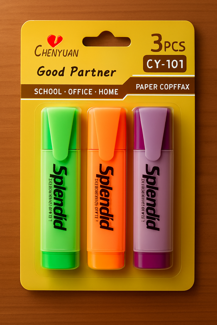 Pack of 3 Highlighters – Vibrant, Long-Lasting, Smooth Ink for Study, Office & Creative Use