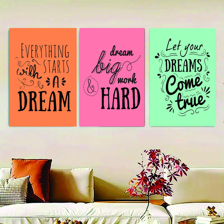 Pack of 3 Motivational quotes sticky wooden canvas frames for wall decore / motivation sticky phototiles for office and room wall decoration