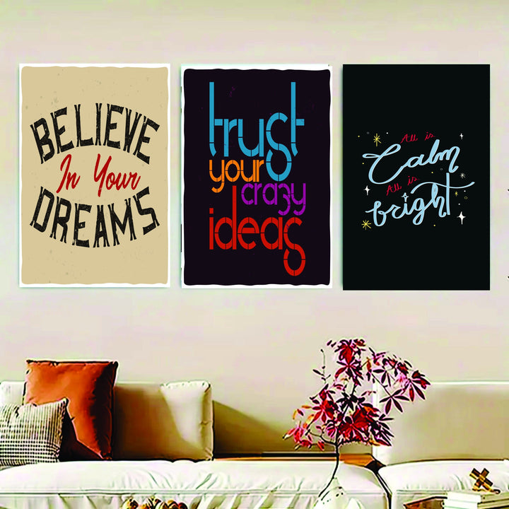 Set Of 3, Abstrac Wall Art Photo Canvas Wooden Tile Frame