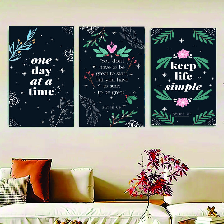Set Of 3 Motivational Sticky Canvas Frames For Wall Decore / Sticky Phototiles