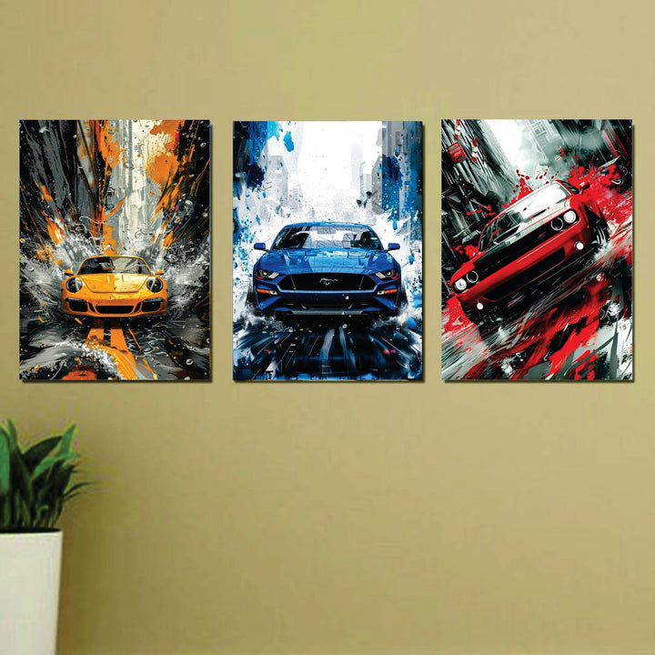 Set Of 3 Racing Cars Digital printed painting Photo Tile frame
