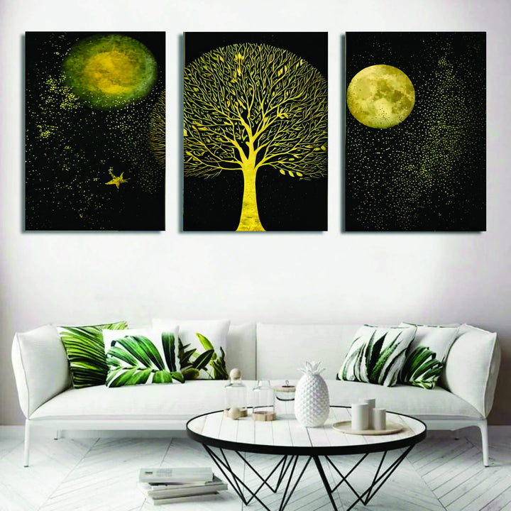 No Of Frames : 3 Size : 8x11 inches each Frame Material : high quality mdf wooden Sticky Tape Attached at the back for sticking on wall Beautiful Designs Which will give your interior a spiritual vibe