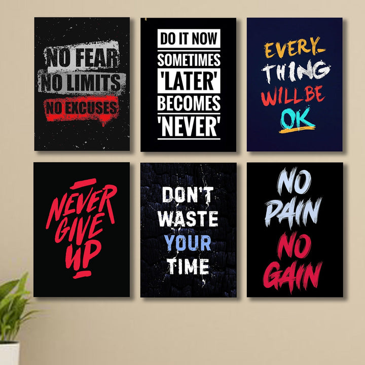 set of 6 Motivational sticky canvas frames for wall decore / sticky phototiles